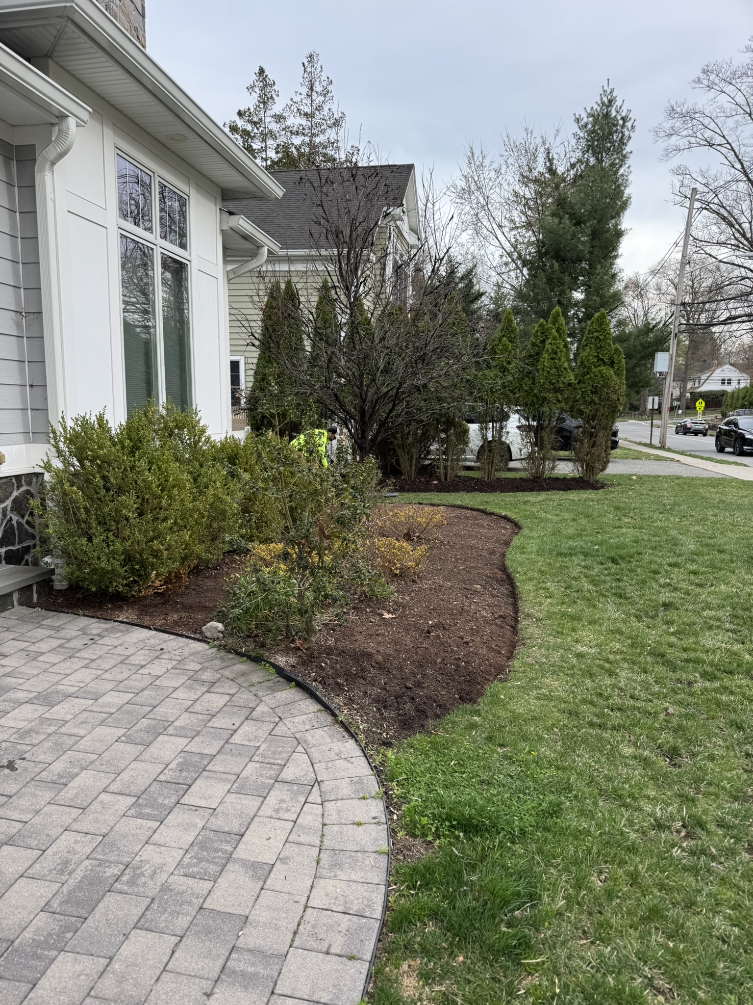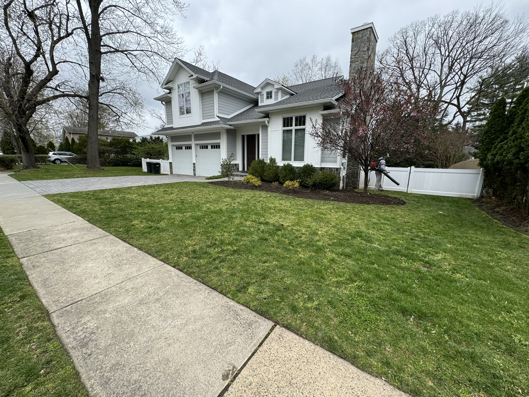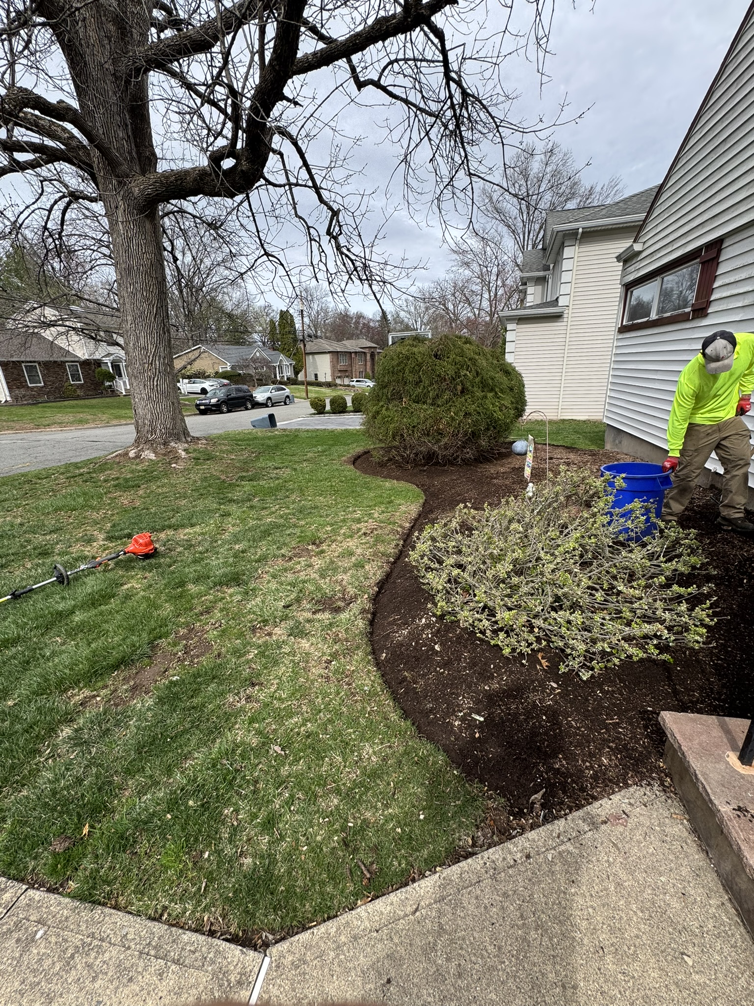 Our Spring Cleanup includes removing leaves, sticks, and winter debris from the lawn and beds, redefining bed edges, blowing out all hard surfaces, and preparing the property for the first mow of the season. Additional services like mulch installation or pruning can be added upon request.